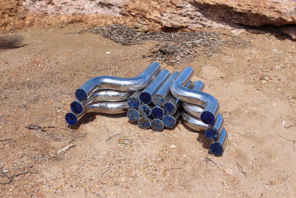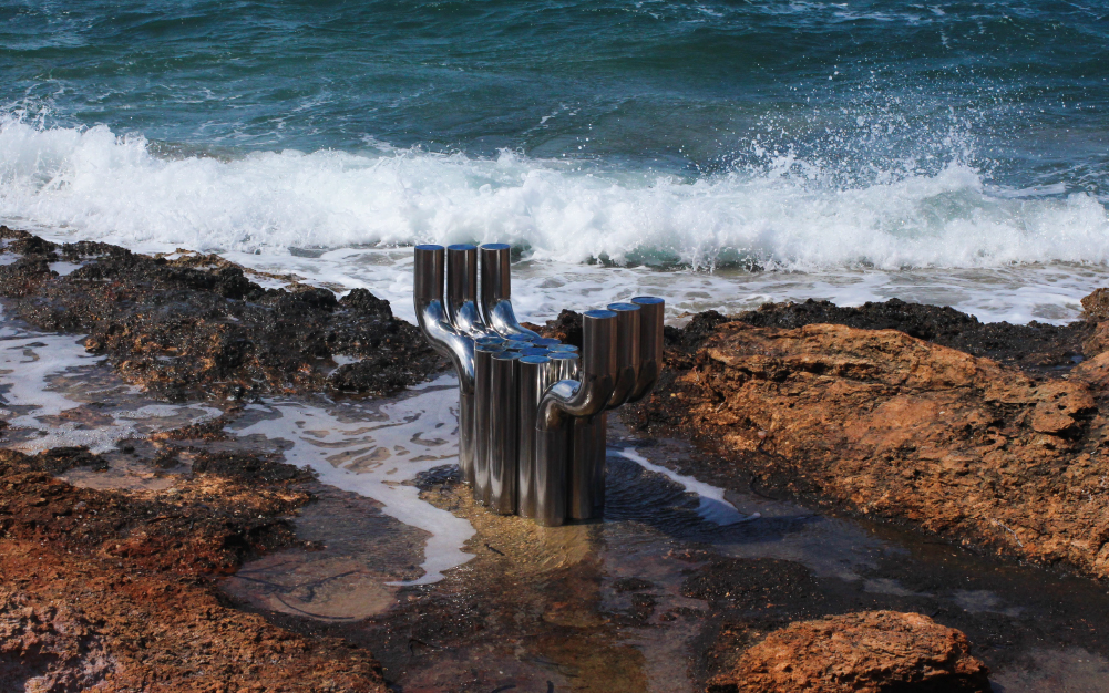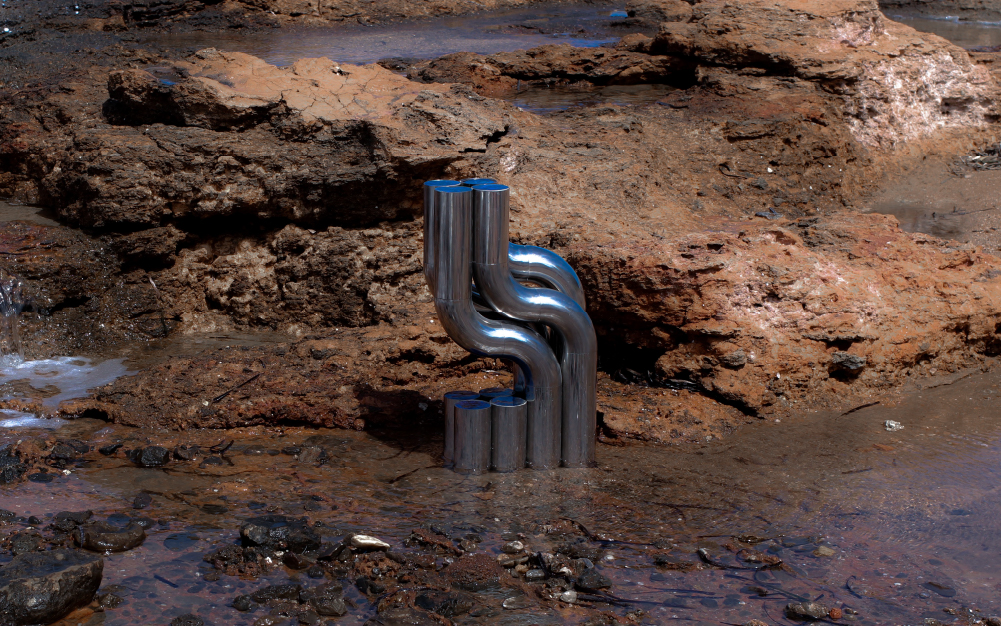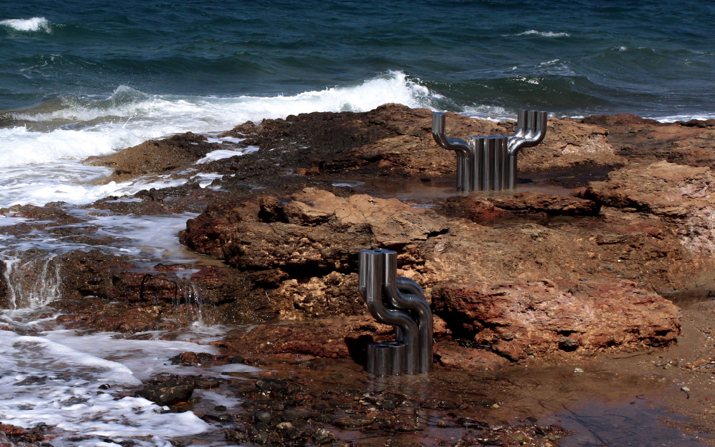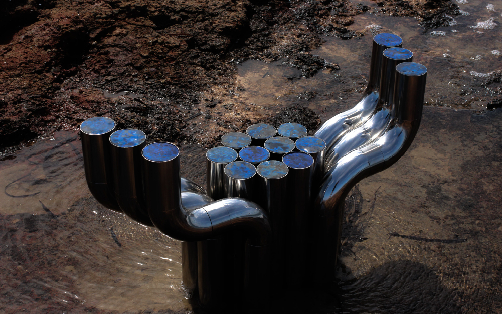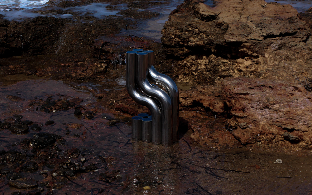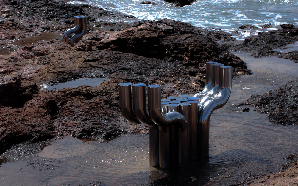 Having a common fascination for underwater life, the ‘sea anemone pieces’ playfully pushes the boundaries of functional objects. Complex in technique and utterly unconventional, the work of the duo generates a dynamically unique and surprising sculptural environment. Based on personal memories and experiences the designs contemplate an early “close to the sea”/deep sea long lost childhood reminiscent of times governed by naiveness and lightness. Against that thought, the constructive elements of the forms originate from the aesthetics of more brutalistic urban sources, such as the public transport handles, car tubes and billboard structures, inevitably commenting on a frenetic way of living an adult life. As a personal attempt to overlay everyday urban wandering with a fictional veil and to recreate the dreams of the childhood with the materials of adult urban life.