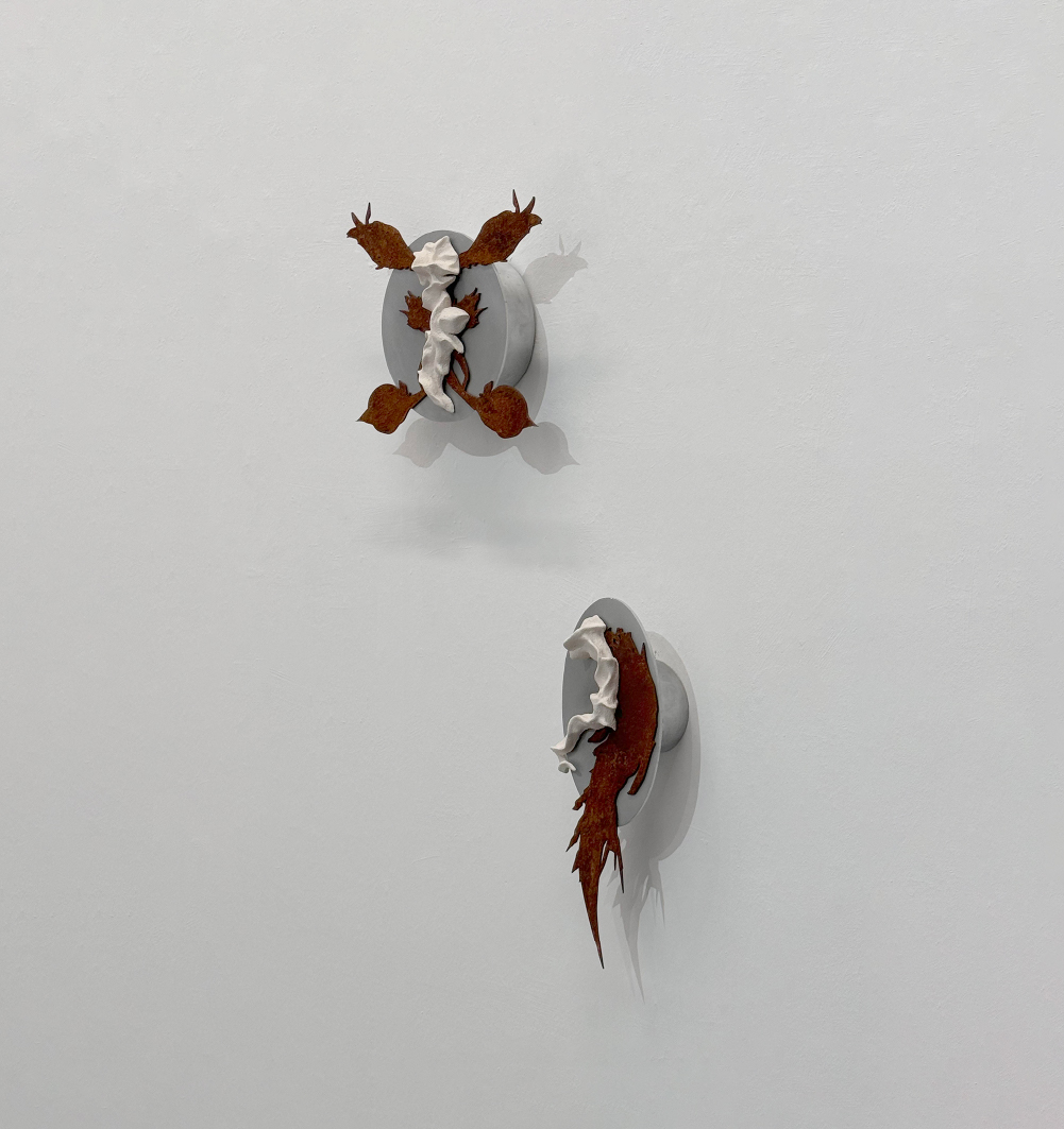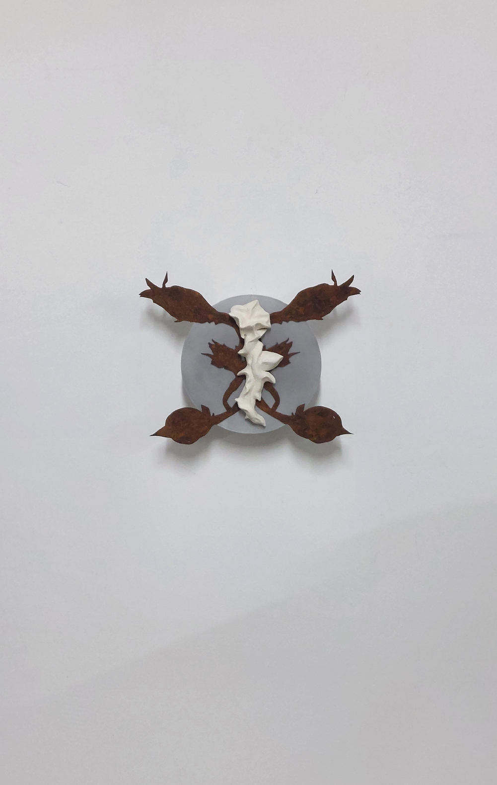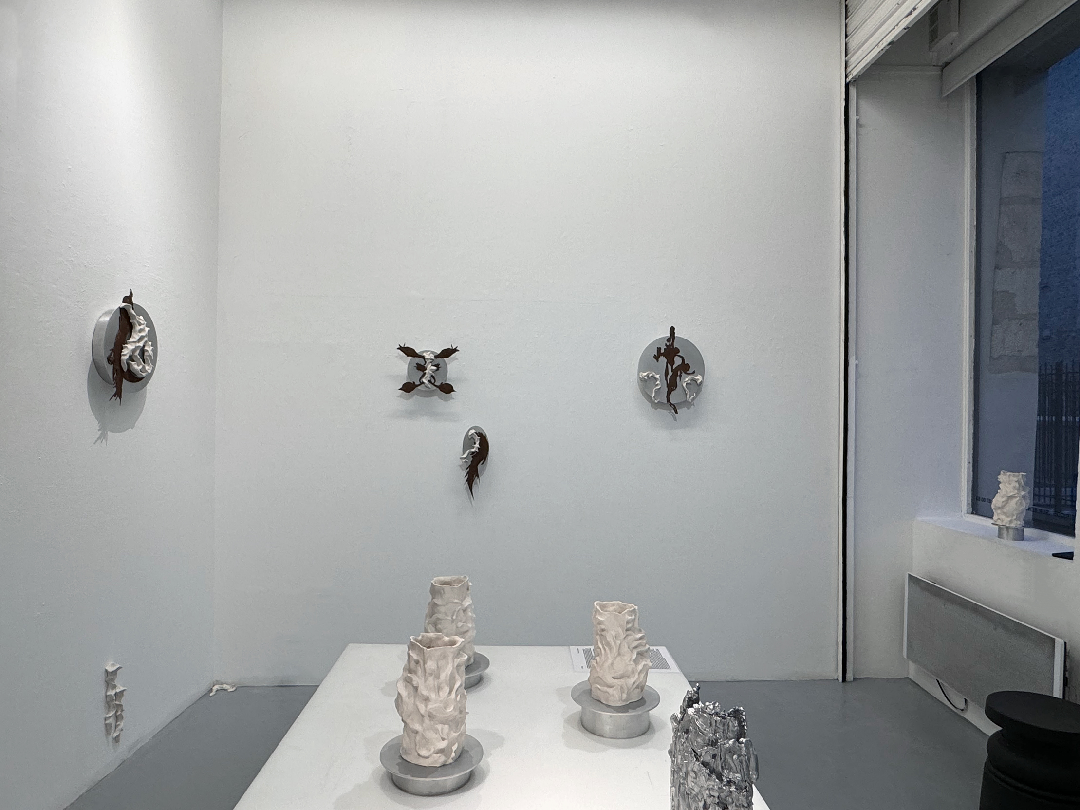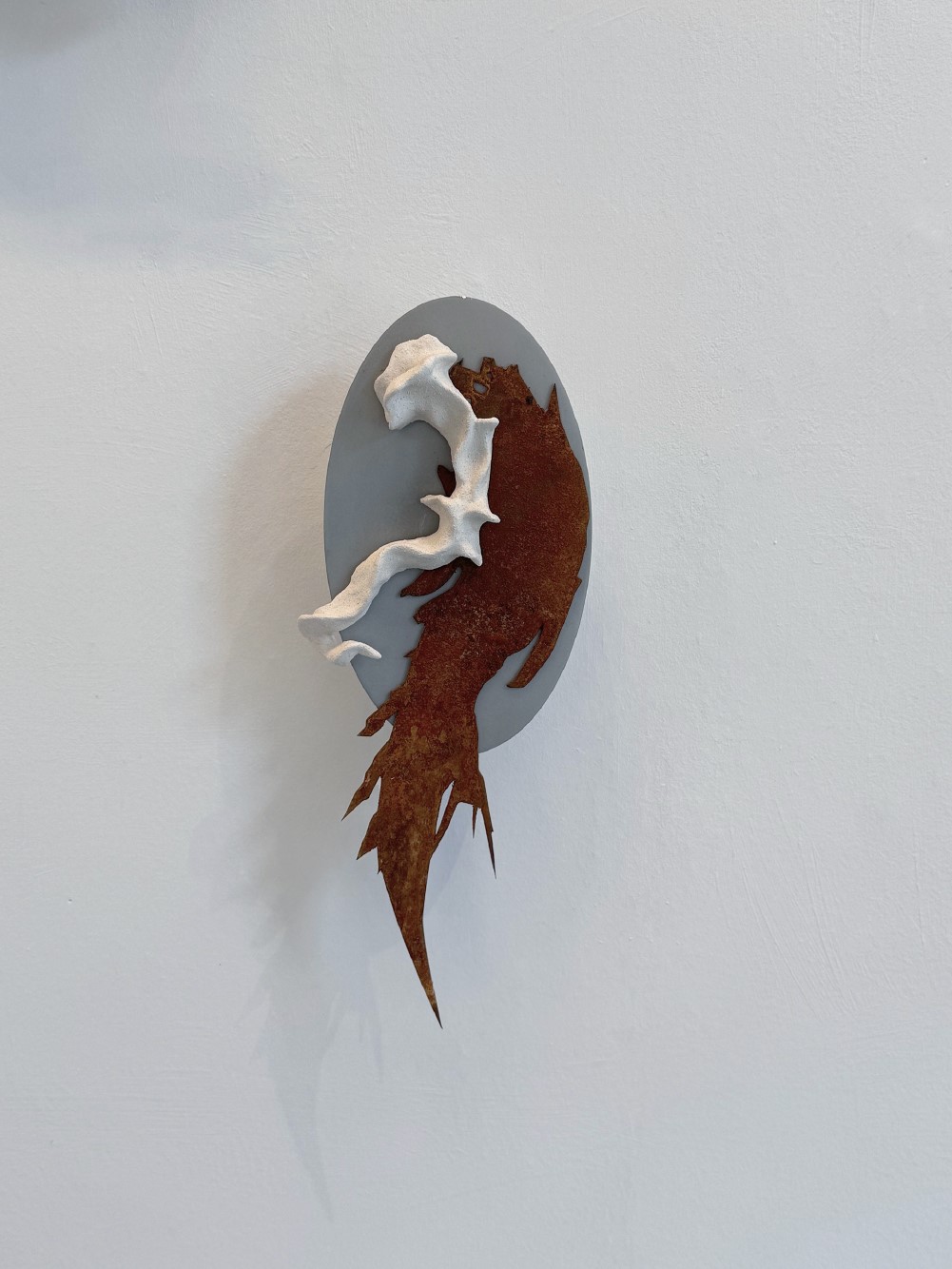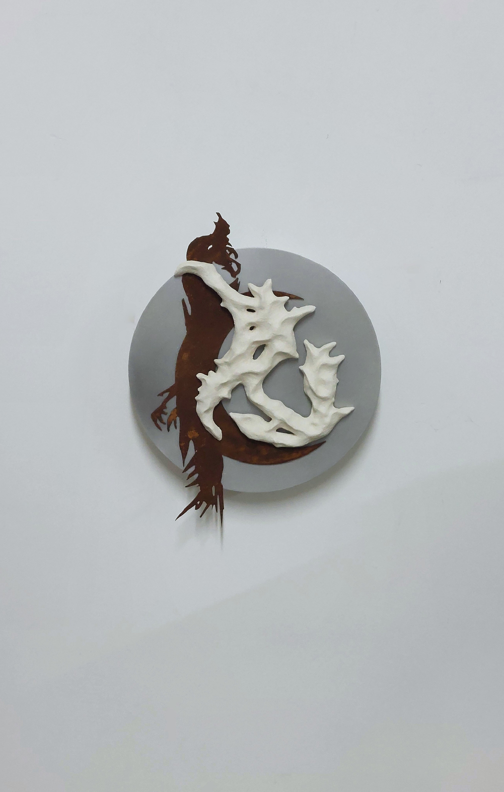 For this exhibition, I crafted a semi-fictional story inspired by a variation of the Greek folk tale ‘Ο Βασιλιάς Ανήλιαγος’ (Vasilias Aniliagos-King Sunless), itself rooted in ancient myth. Each artefact in this exhibition serves as a tangible chapter from the story, with every piece activating and completing parts of the narrative. The text of each moment is written onto a vase, while rust was used to emphasize the darkest moments, much like a creeping decay that seeps into the work, transforming the beauty of the familiar into something raw and unsettling, revealing the corrosion beneath the surface of myth.