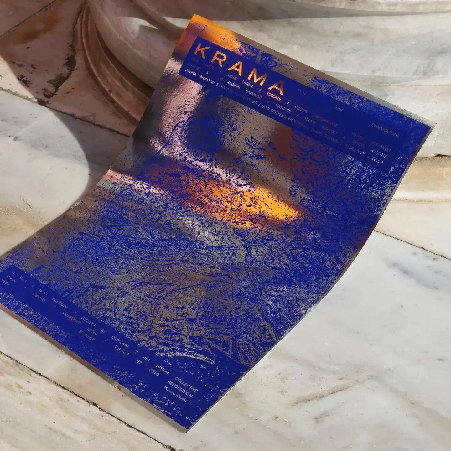 For the graphic design the cyanotype technic was used to create the base of the design which was then manipulated digitally to bring the final result. This technic is based on UV exposure and photosensitive chemicals, so the only parameters that defined the result were the sunlight, branches and leaves we collected from the urban environment.