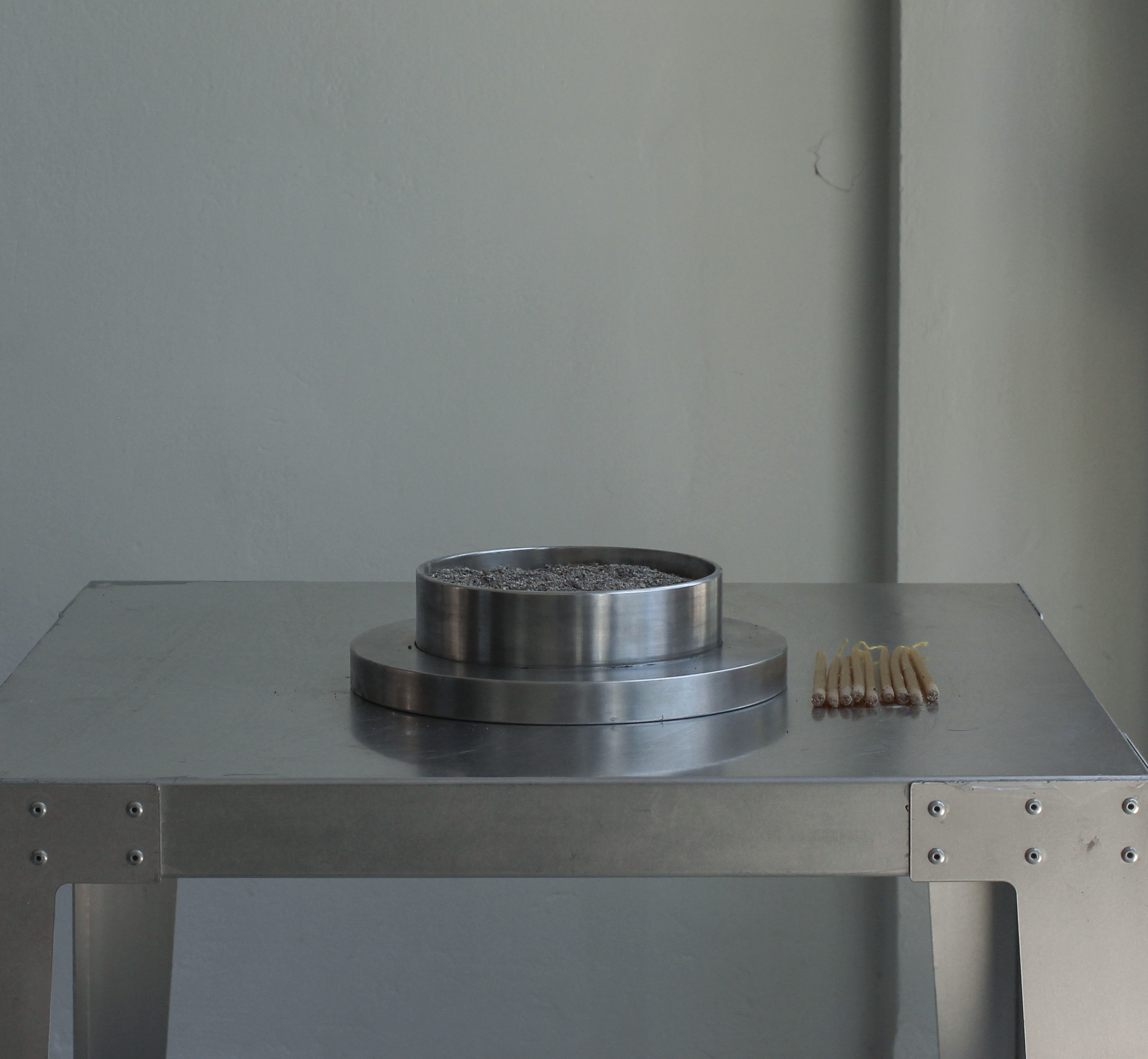The design focuses on materiality, simplicity and clean lines but at the same time carries nostalgia and spiritualism. The candle holders are filled with sand, the same sand that is used to fill church candelabras (manuale) as a modernized representation of a ritual that has lost its functional value and transforms into a meaningful gesture which evokes memories.