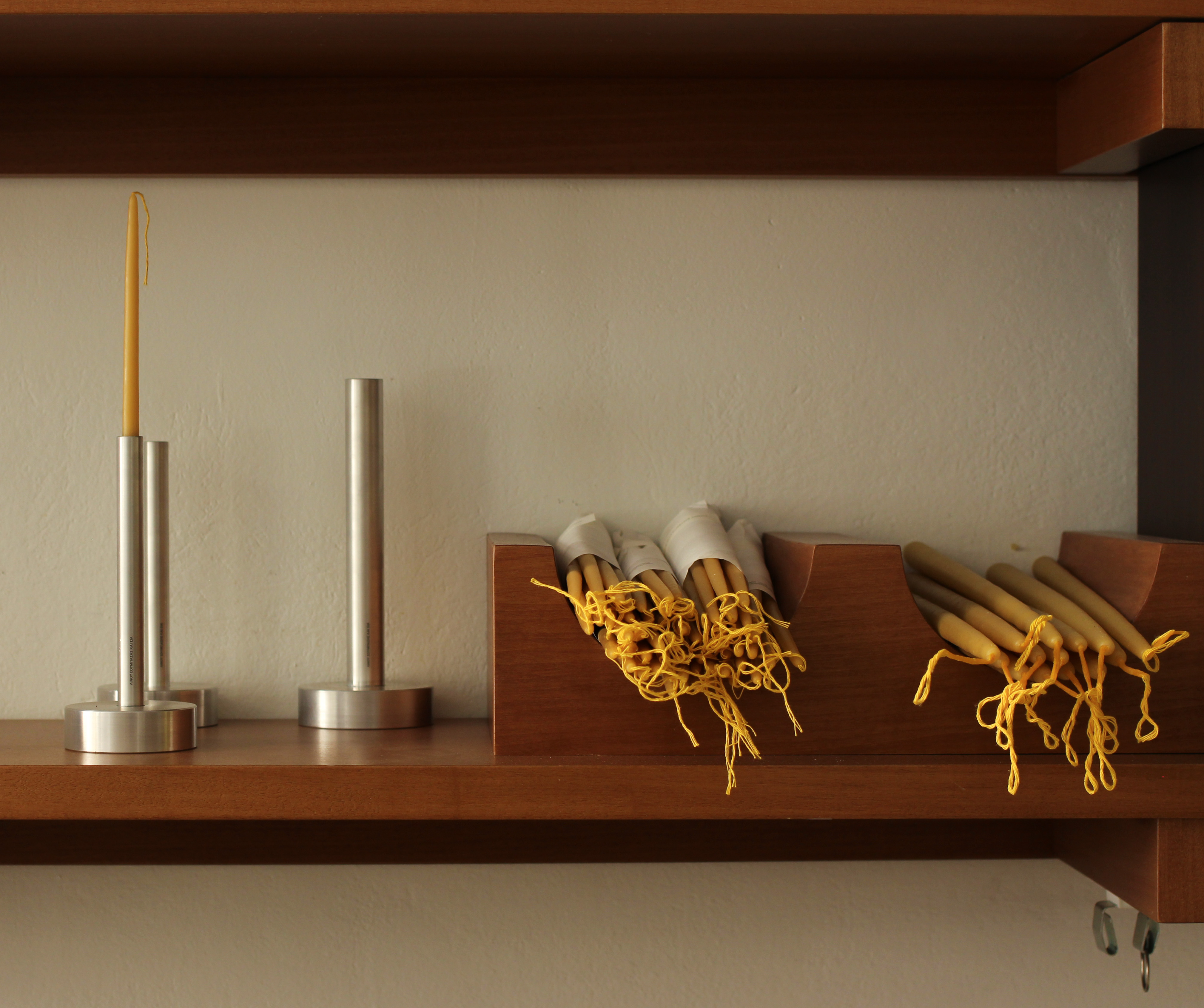 The bases: BOI, MANUALI, ENA S are defined by and faithfully follow the scale of the church candles. The bases are handcrafted one by one by local makers, and their production takes hours, creating a contrast with the nature of the industrial material.