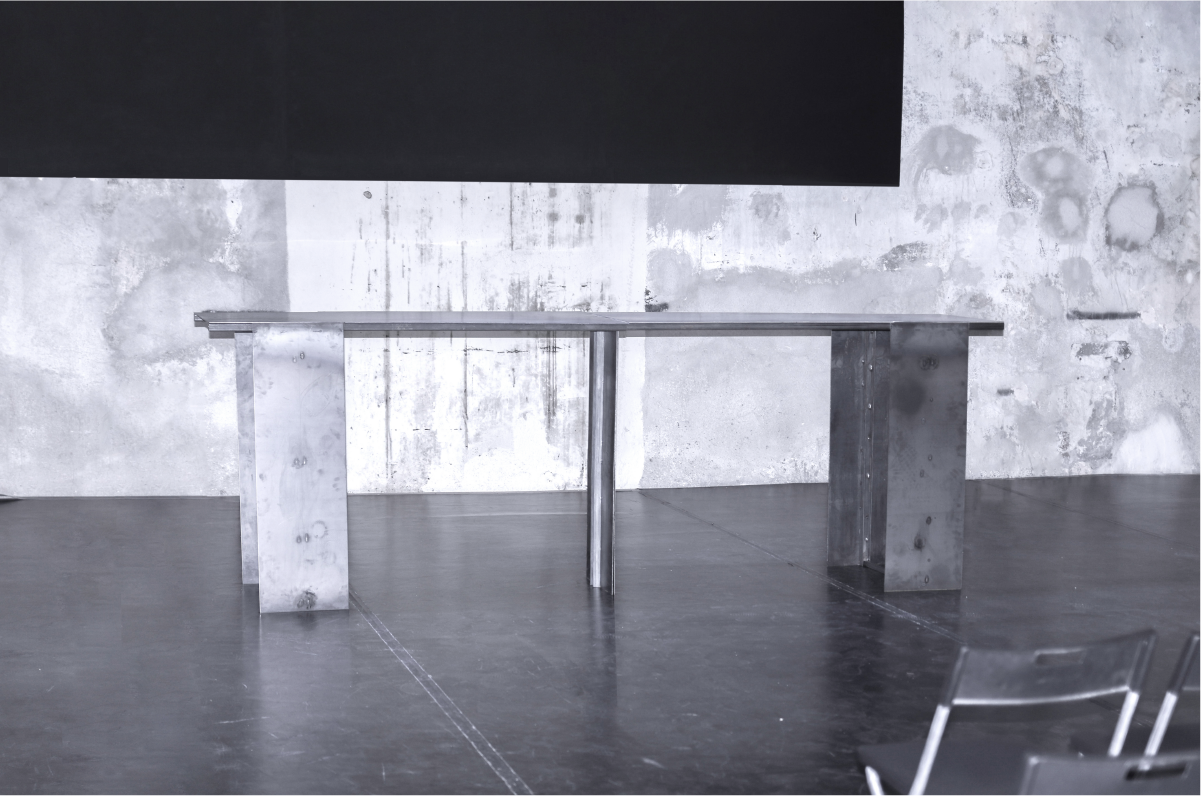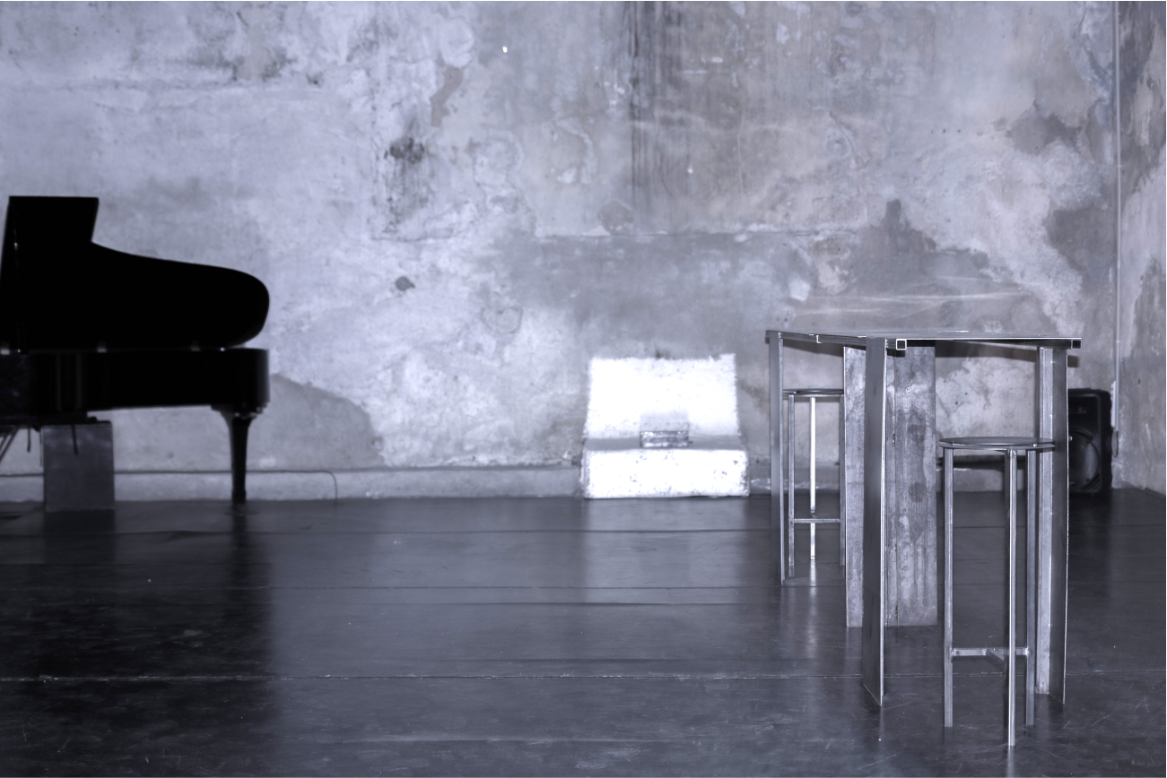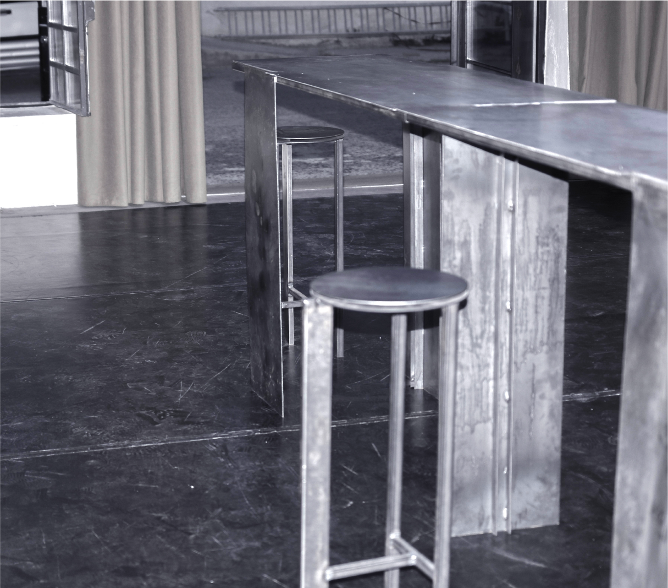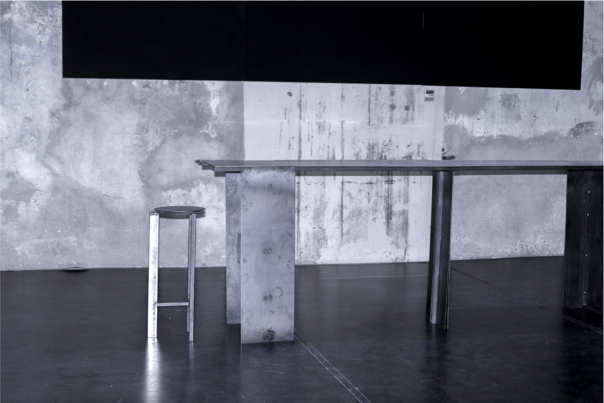 Set, Furniture Design for the play 'Moderato Cantabile' by Marguerite Duras. The design reflects the industrial, heavy environment of the harbour, where the story takes place.