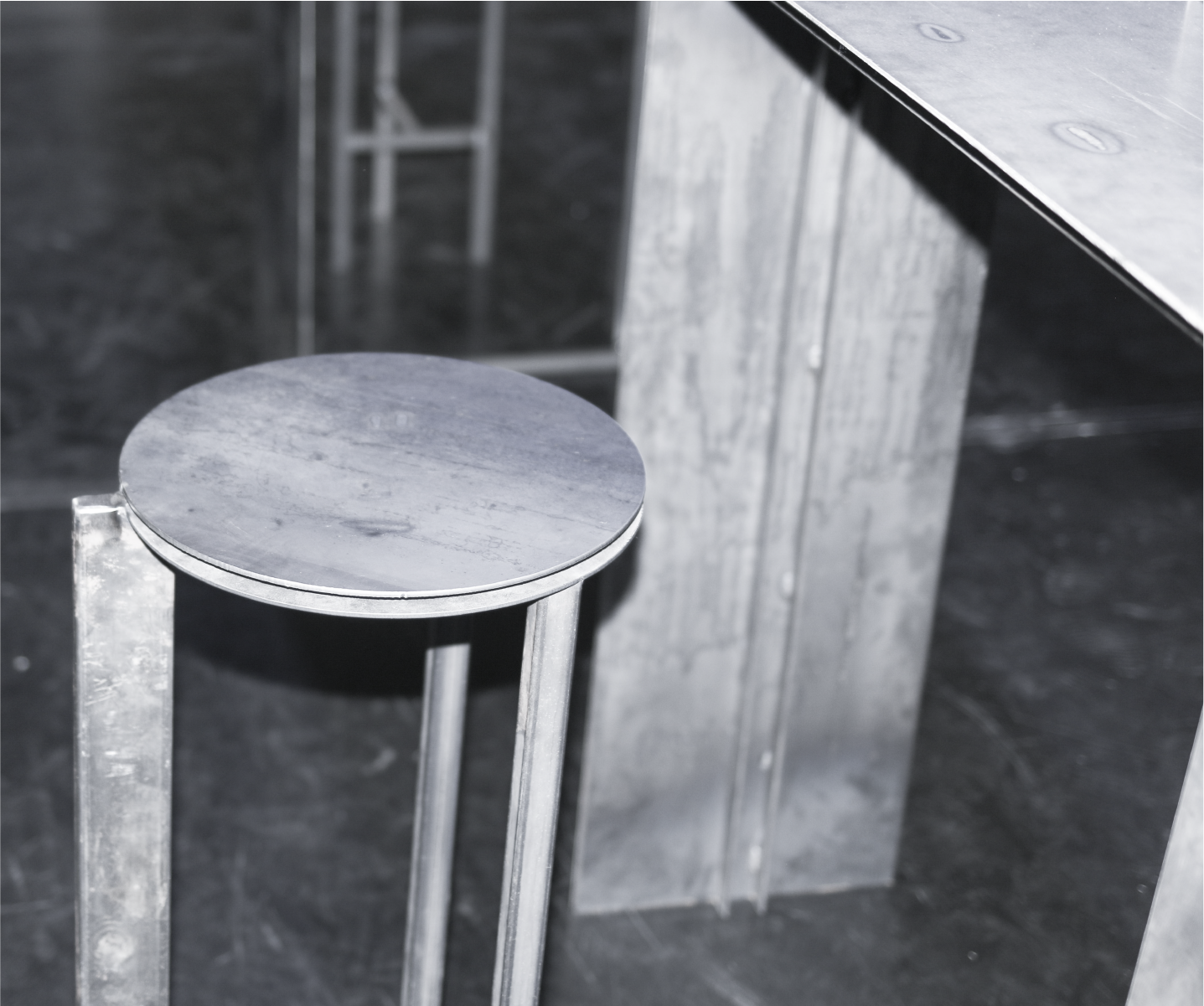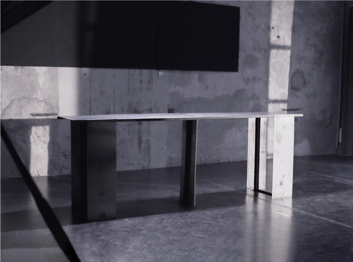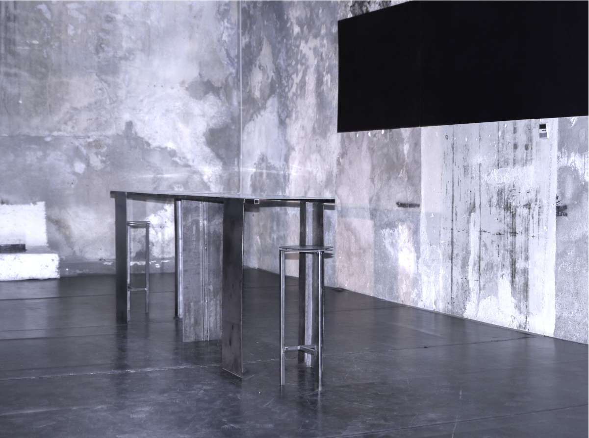 Set, Furniture Design for the play 'Moderato Cantabile' by Marguerite Duras. The design reflects the industrial, heavy environment of the harbour, where the story takes place.