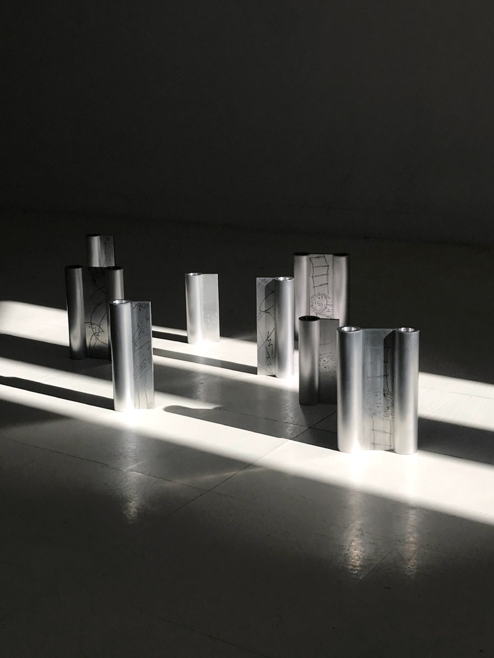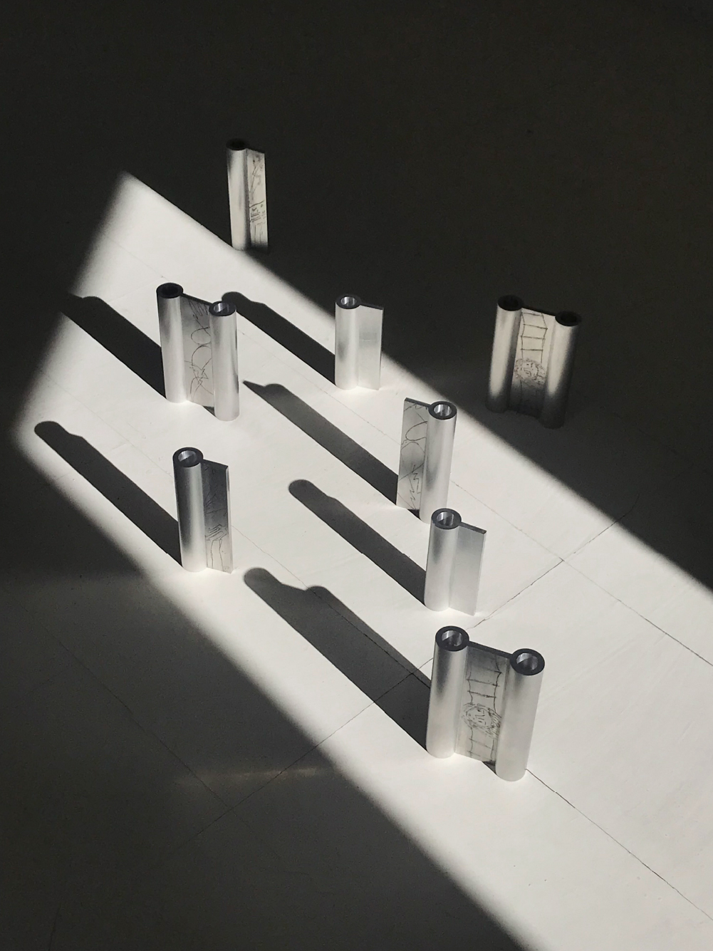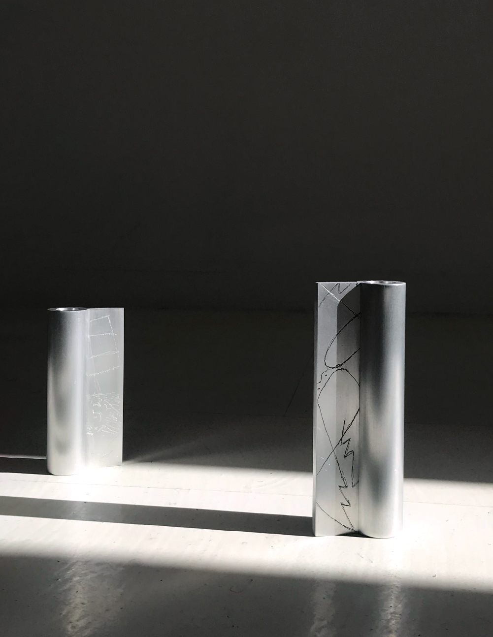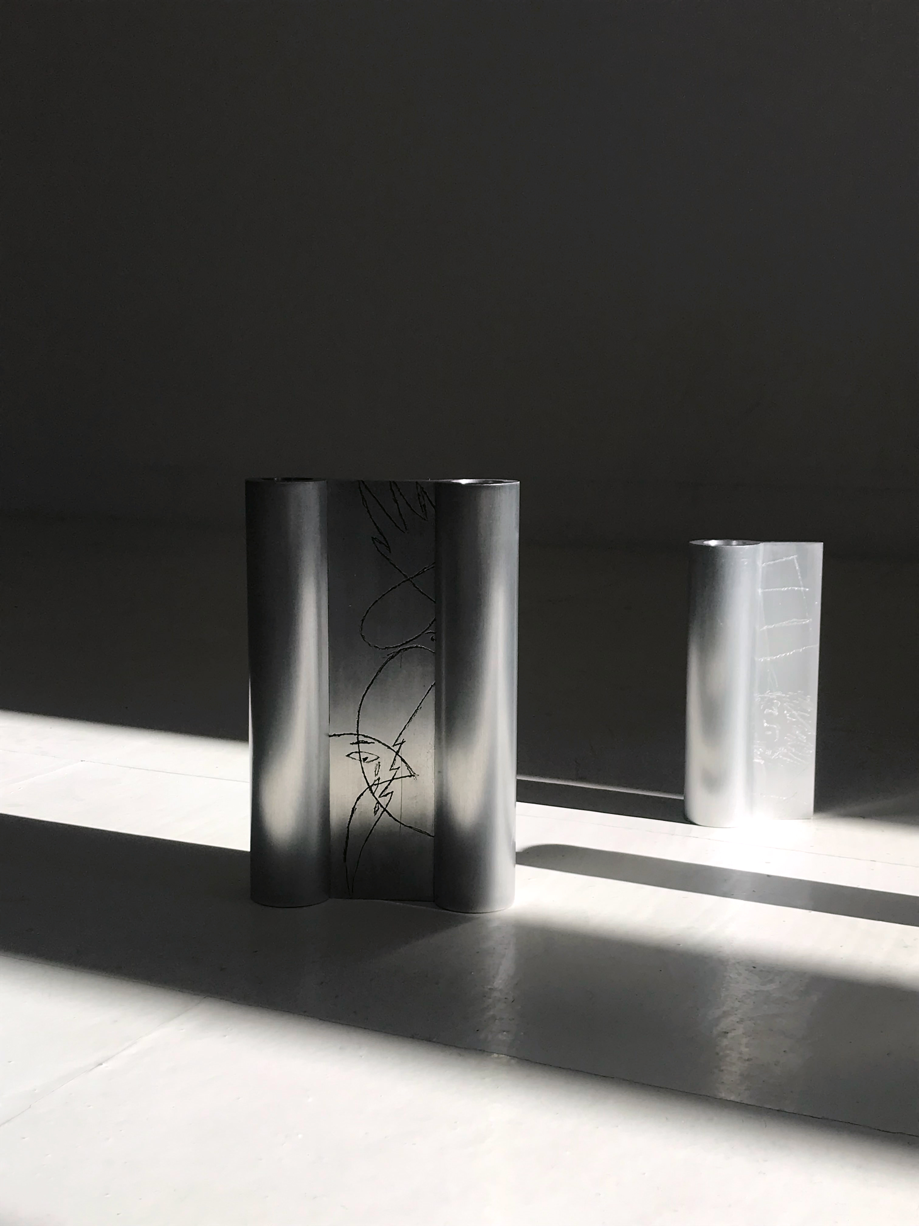 ‘Marine Assembly’ handmade and crafted aluminium candleholders with unique engraved sketches designed and produced in collaboration with @serapismaritime