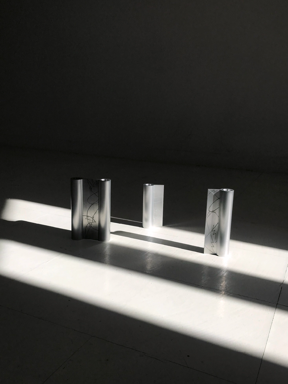 Emulating the materiality, feeling an uncomfortable warmth of engine rooms, each item is designed to work on its own or as a larger choir of assembled sketches, like abstract notes on a hull’s surface.