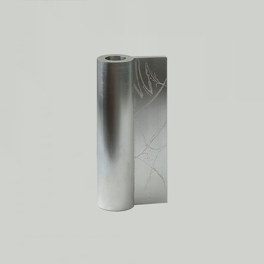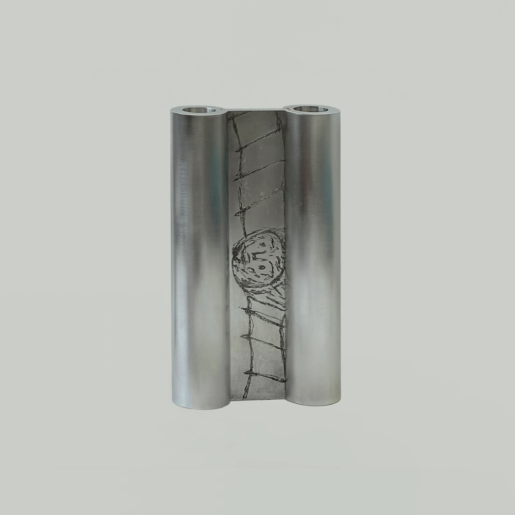 The candleholders are inspired by the culture and materiality of the maritime industry. The material is aluminum which has been processed using hand-craft techniques in order to transform the object into a container that bears the traces of the spirituality of the maritime world, communicating its energy, emotion, and imagination.
